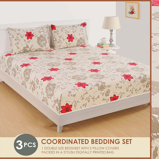 Beige Botanica Double Bedsheet + 2 Pillow Cover