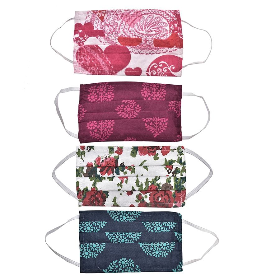 Available in different design & Colors (Combo of 4 Cotton pleated Masks )