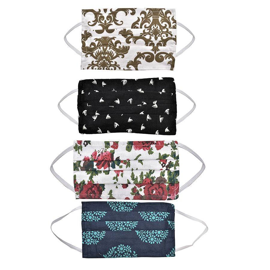 Available in different design & Colors (Combo of 4 Cotton pleated Masks )