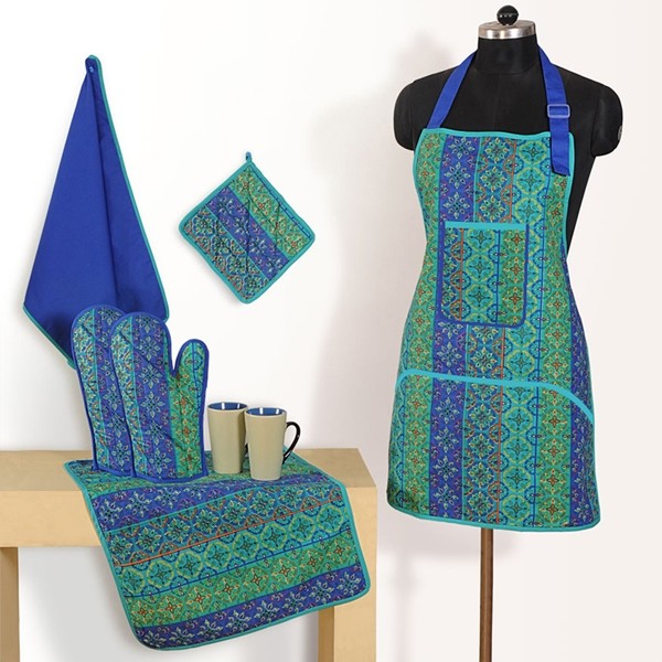 Printed Apron 1U + Oven Mittens 2U + Pot Holder 1U (ITEM CODE: KS01-4) Total Item: 4U Apron-24 x 28 / 0.60 m x 0.70 m / 60 cm x 70 cm, Oven Mitten-8 x 12 / 0.20 m x 0.30 m / 20 cm x 30 cm, Pot Holder -8 x 8 / 0.20 m x 0.20 m / 20 cm x 20 cm Rs. 1,499/-