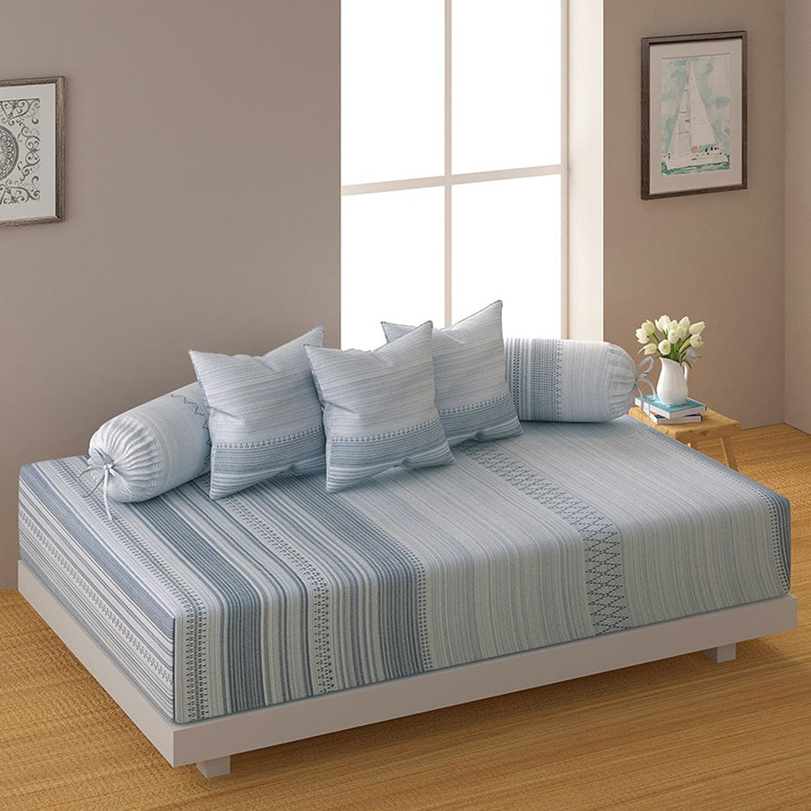 Diwan set: Sheet 1U + Bolster Cover 2U + Cushion Cover 5U (ITEM CODE: DWN18) Total Item: 8U Diwan sheet: 150cm x225cm / 1.5 m x 2.25 m / 60 in x 90 in, Cushion covers: 40 cms x 40 cms / 0.40 m x 0.40 m / 16 in x 16 in, Bolster Cover: 75 cms x 75 cms / 0.75 m x 0.75 m / 30 in x 30 in Rs. 3,649/-