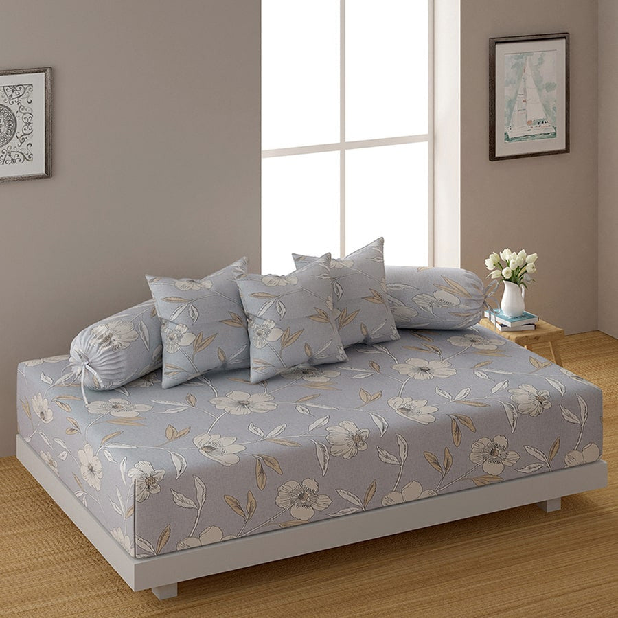 Diwan set: Sheet 1U + Bolster Cover 2U + Cushion Cover 5U (ITEM CODE: DWN18) Total Item: 8U Diwan sheet: 150cm x225cm / 1.5 m x 2.25 m / 60 in x 90 in, Cushion covers: 40 cms x 40 cms / 0.40 m x 0.40 m / 16 in x 16 in, Bolster Cover: 75 cms x 75 cms / 0.75 m x 0.75 m / 30 in x 30 in Rs. 3,649/-