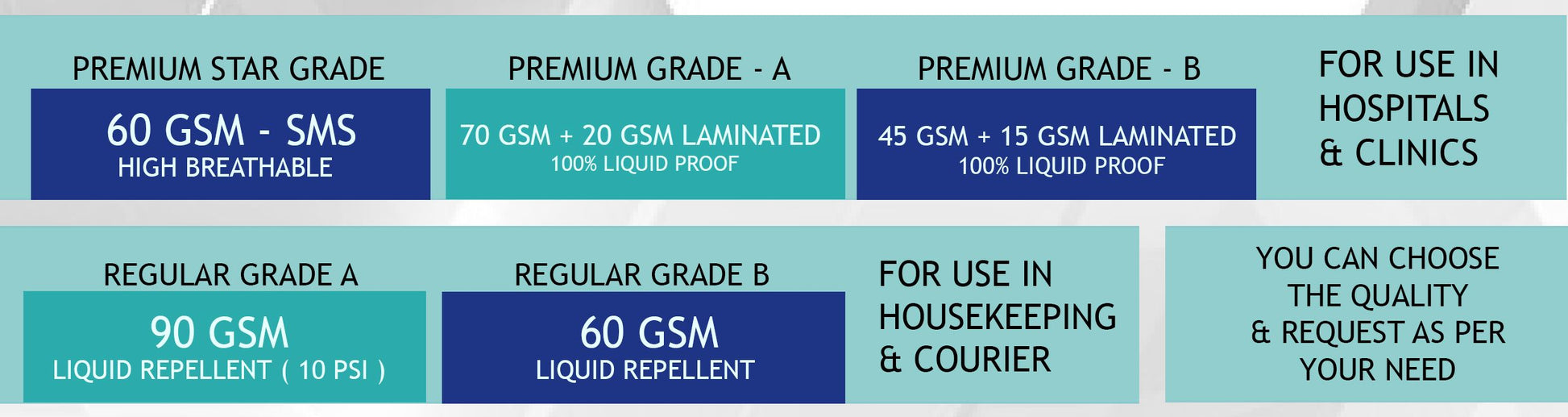 | Product Type | Non Woven, 90 GSM Liquid, Non Breathable | |