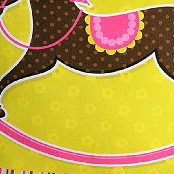 The rocker kid’s cushion covers take you back down the memory lane with a horse rocker printed over the cover over a bright yellow backdrop faintly highlighted with flowers. The horse on the cushion cover is printed in dark brown color with light brown spots giving the horse a rich texture and a majestic look, while the strap and saddle are in bright pink color. The rocker is also in pink which suddenly grabs your child’s attention, below the rocker you can spot pretty pink flowers. The cushion cover is piped with pink which accentuates the bright yellow color. We have a 100% buy back policy, valid on products which are defaulted or not up to your requirement.