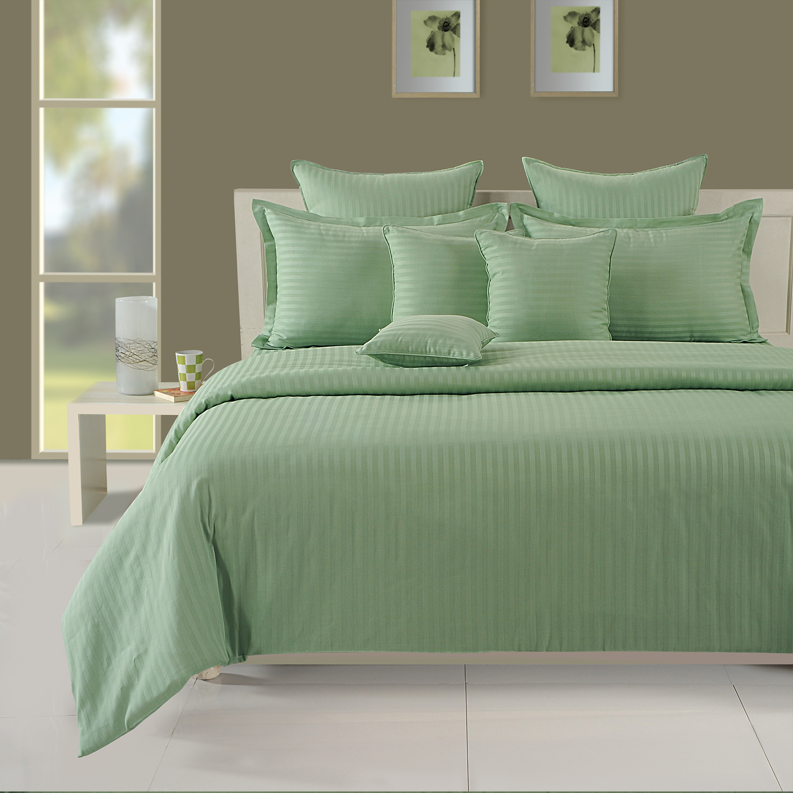 Buy Green Garland Bed Sheet from our online shopping portal Swayamindia.com, which is designed in self stripes. This solid color bed sheet needs very hassle free maintenance. You can easily launder it in your own washing machine at home. Dry cleaning is not mandatory. The bed linen is 100% color fast so there will be no risk of color bleed.