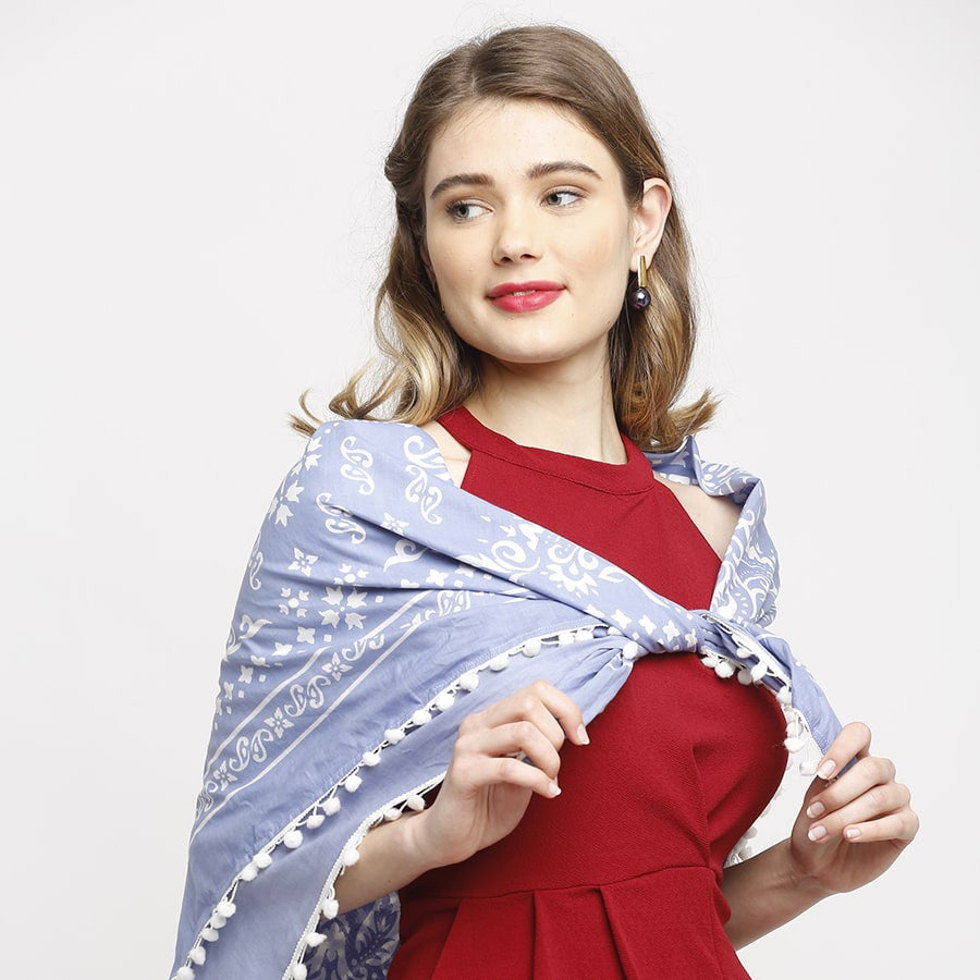 Swayam Multicolor Ethnic Hand Printed Voile Scarf is a Mulmul Cotton Fabric product with super soft plush feel and vibrant look. The scarf is a designer hand-crafted product with Pom Pom lace along the entire circumference to give a designer look. This scarf comes under Swayam's Gulmohar Collection which could be used in various drape styles and use and could be a perfect gift for your mother, wife, daughter or a lady with Fashion Love. The product comes in a compact Eco-Friendly box packaging with slider-style opening containing 1 piece in each box.