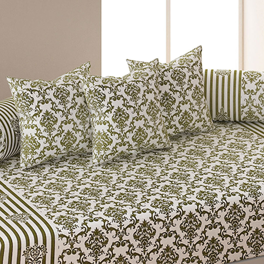 | Diwan set: Sheet 1U + Bolster Cover 2U + Cushion Cover 5U (ITEM CODE: DWN18) Total Item: 8U | Diwan sheet: 150 cm x225 cm / 1.50 m x 2.25 m / 60 x 90, Cushion covers: 40 cm x 40 cm / 0.40 m x 0.40 m / 16 x 16, Bolster Cover: 75 cm x 75 cm / 0.75 m x 0.75 m / 30 x 30 | Rs. 3,249 |