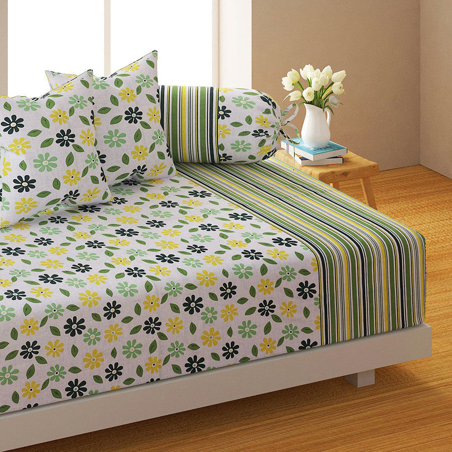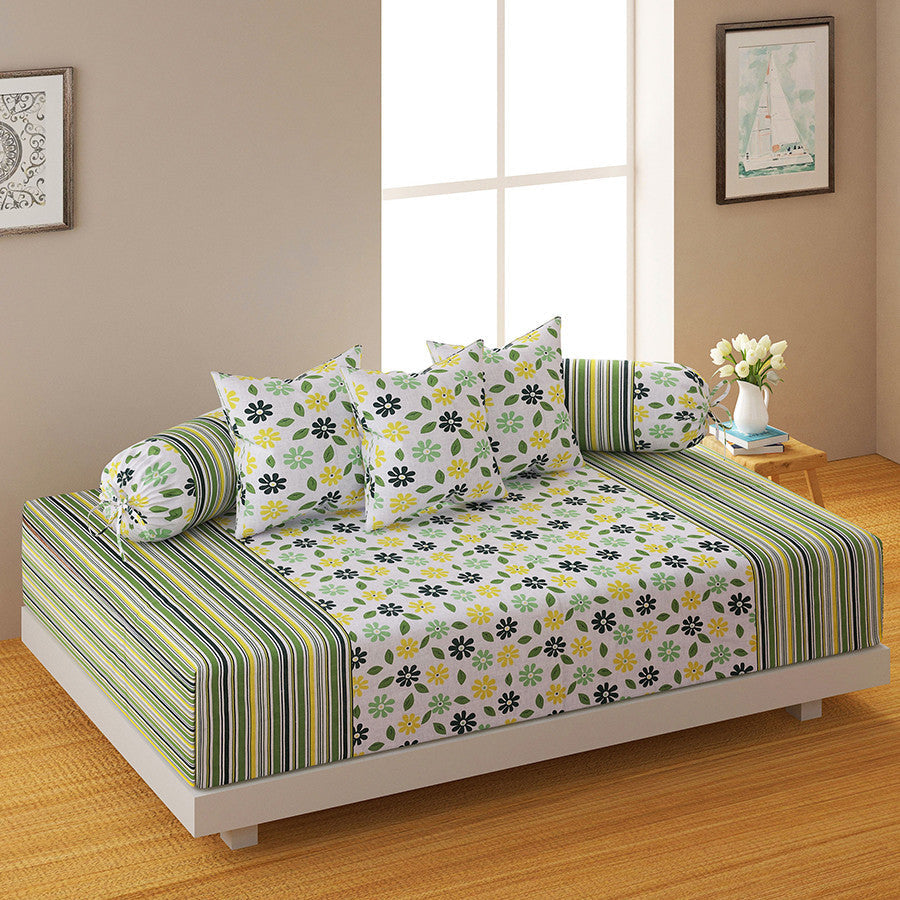 Diwan set: Sheet 1U + Bolster Cover 2U + Cushion Cover 5U (ITEM CODE: DWN18) Total Item: 8U Diwan sheet: 150cm x225cm / 1.5 m x 2.25 m / 60 in x 90 in, Cushion covers: 40 cms x 40 cms / 0.40 m x 0.40 m / 16 in x 16 in, Bolster Cover: 75 cms x 75 cms / 0.75 m x 0.75 m / 30 in x 30 in Rs. 3,249/-