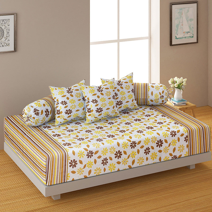 Diwan set: Sheet 1U + Bolster Cover 2U + Cushion Cover 5U (ITEM CODE: DWN18) Total Item: 8U Diwan sheet: 150cm x225cm / 1.5 m x 2.25 m / 60 in x 90 in, Cushion covers: 40 cms x 40 cms / 0.40 m x 0.40 m / 16 in x 16 in, Bolster Cover: 75 cms x 75 cms / 0.75 m x 0.75 m / 30 in x 30 in Rs. 3,249/-